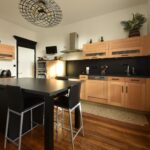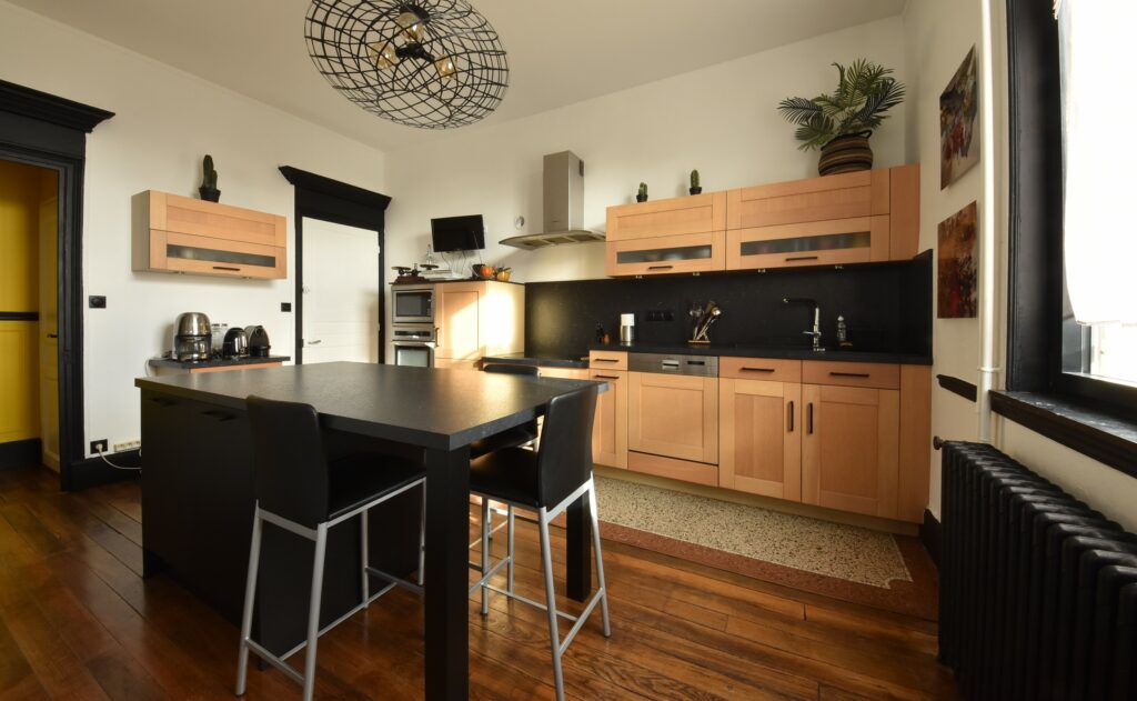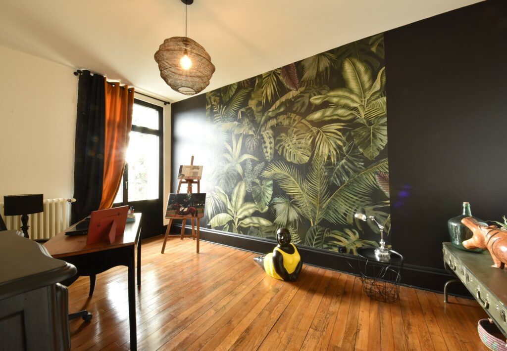 De beaux matériaux ont été choisis pour rénover cette maison chaleureuse dont le charme réside dans la préservation des éléments d’origine, le granito, les parquets de chêne, les cheminées en marbre,…